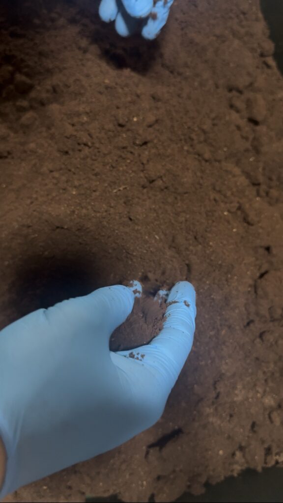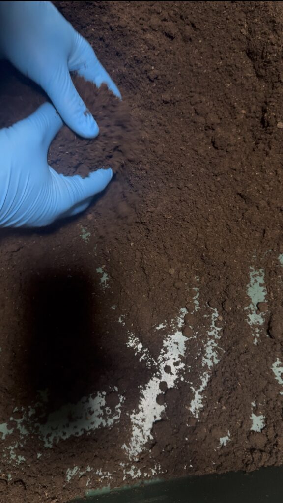 いつもなら時折ガリガリ音がしてたけど、今回無音。気づいてないだけかな?ゼリーは手付かず。これはいつものことだけど・・・・メス大丈夫かな?と少し不安になりながらの産卵ケースを割り出していきます。